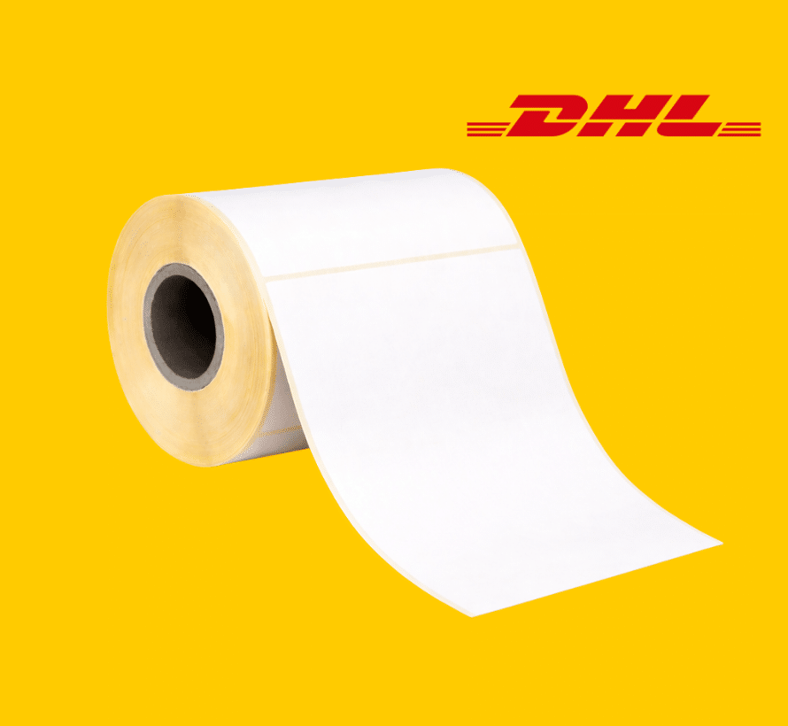 Meestal heeft een DHL label de afmeting 100×210 mm, maar ook andere afmetingen zijn mogelijk. Het is afhankelijk van je type printer of je direct thermische labels of thermal transfer labels nodig hebt.